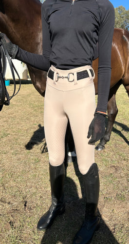 We are thrilled to announce the launch of our latest competition tights. The new design features belt loops, a silicone grip seat and extra leg length. As well as a comfortable light weight fabric, they also have minimal seams. Available in white and cream.